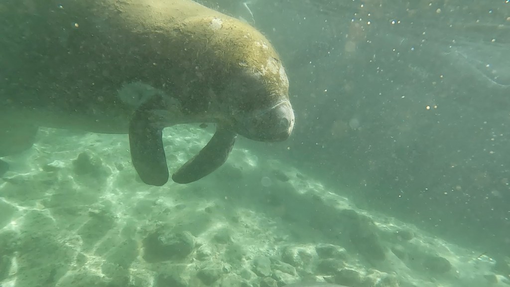 After our walk and visit to the visitors center, it was time to head to our boat! We got a tour with Nature’s Discovery. Our guide, Gary, was very personable and engaging. He did an awesome job keeping us and the manatees safe. Our captain, Dylan, was very knowledgeable about the local area and wildlife as well! They even made us hot chocolate to warm up after we got out of the water. Overall, this tour was a 10 out of 10!